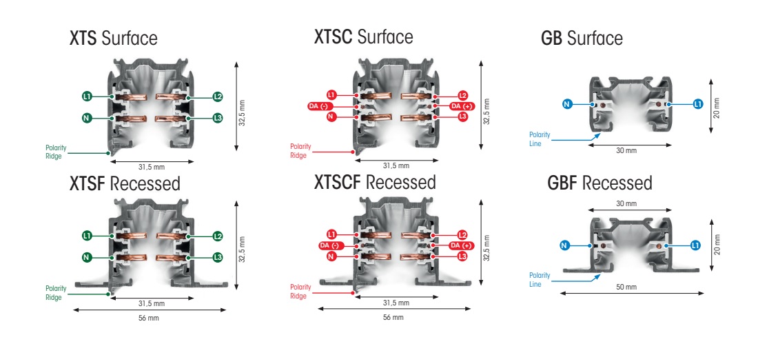 - Pulse Control czyli wersja 3-fazowa Dali, natynkowa (XTSC) i podtynkowa (XTSCF)